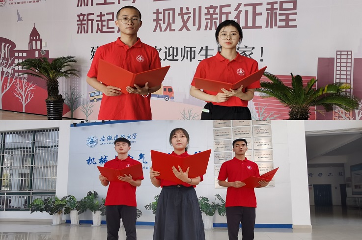 在整齐划一、铿锵有力的朗诵声中,在场的同学们一起回顾了近5年来学校紧跟党的指导所取得的成就。过去的五年,学校全力打造“一年一主题、一月一活动”主题教育的特色品牌,累计开展主题教育活动2000余场次。同时学校主动融入安徽省“四个一”创新战略联盟,充分发挥人才优势和科技优势扎实开展乡村振兴战略实施及乡村规划编制、人居环境整治工作。