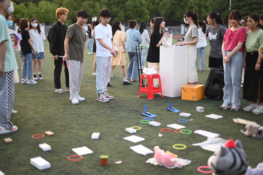 本周活动以鼓励同学们达成健身任务的形式,获得套圈,从而赢取奖励。活动前期准备了精美的玩偶,杯子,书立,笔筒等作为奖品,吸引了众多同学的目光。活动过程中,同学们与学校教职工皆踊跃参与,纷纷走进操场,接过跳绳,挥洒汗水,在徐徐微风中收获身心愉悦。套圈时,有的同学目标准确,锁定最远距离;有的同学瞄准比较容易套中的前排奖品稳扎稳打,收获颇丰。活动现场气氛愉悦,欢乐开怀,不时爆发出一阵阵喝彩声。晴日当空,五彩的套圈装点校园色彩,欢声笑语尽显春日朝气,让封闭的校园一改往日沉闷。