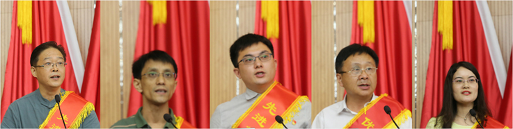 先进基层党组织代表,建筑与规划学院党委书记唐劲松、马克思主义学院党总支基础纲要教师党支部书记张亮、材料与化学工程学院党委学生第三党支部书记胡明亮,优秀共产党员代表、后勤服务集团总经理戴前宏,优秀党务工作者代表、环境与能源工程学院学生第五党支部书记雷雪芹分别发言。