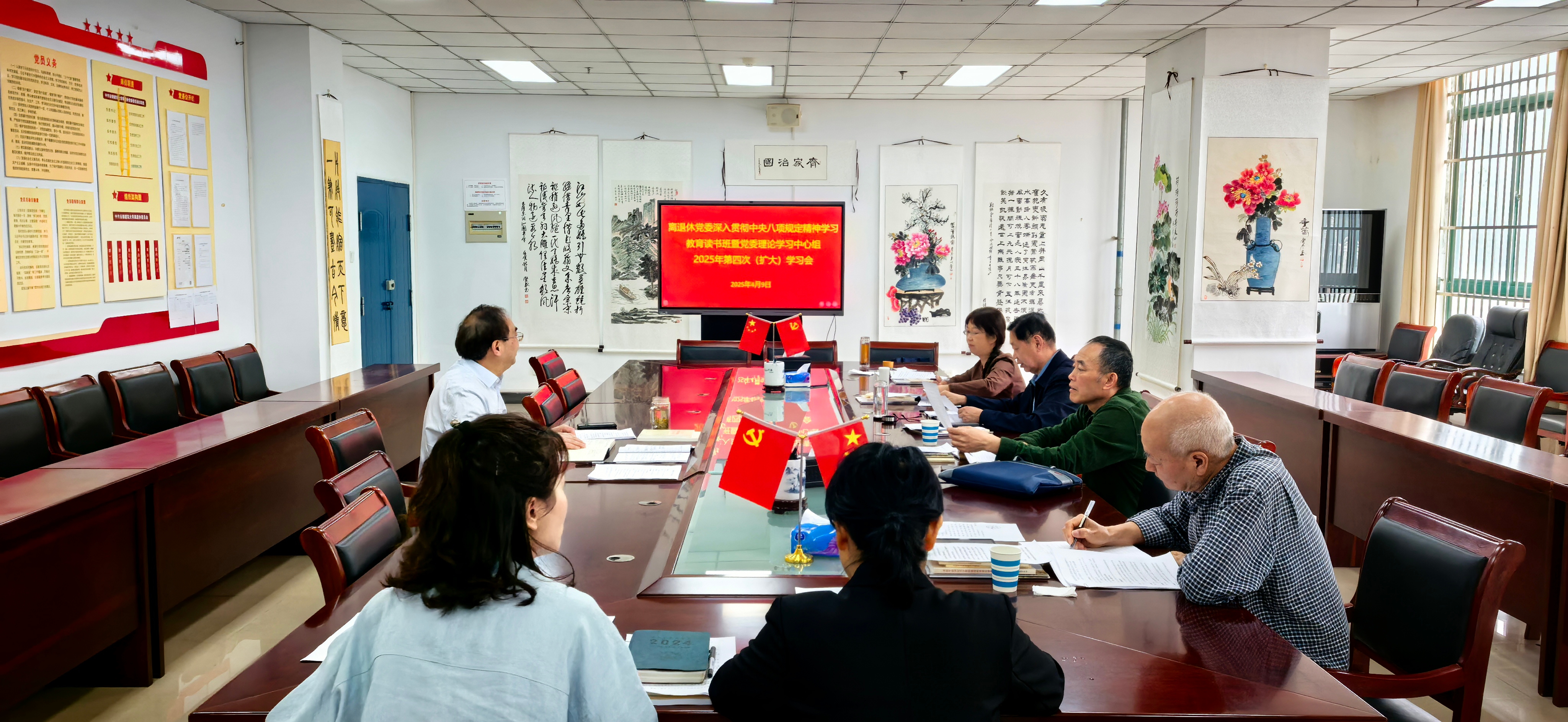 本网讯 4月8日至9日,离退休党委举办深入贯彻中央八项规定精神学习教育读书班暨党委理论学习中心组学习。离退休党委副书记汪涛主持会议,离退休党委委员、支部书记、抽点列席党员参会。