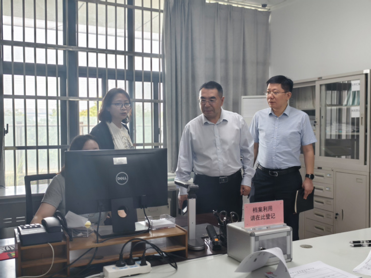 在档案馆和财务处办事大厅,蔡国军与工作人员交流了解师生办理业务方面的流程以及开展深入贯彻中央八项规定精神学习教育以来的学习心得和体会,讨论作为窗口部门结合此次学习教育如何转变工作作风、简化工作流程,方便师生办理业务。