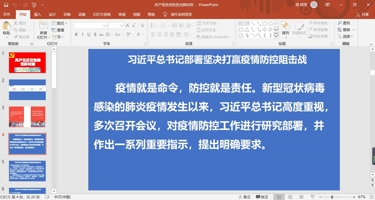 习近平总书记指出,基层党组织和广大党员要发挥战斗堡垒作用和先锋模范作用,广泛动员群众、组织群众、凝聚群众。在这特殊时期,辅导员胡明亮给学生党员上了一次特殊的网络党课。
