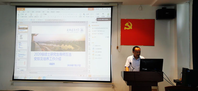 冯绍杰院长解读上级相关文件精神和要求;并重点介绍安建大-中科院合肥院联合培养2020级研究生情况和细则,就学生关心的问题进行了交流并给与详细解答。(文/图:陈建利;审稿:冯绍杰)