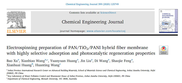冯绍杰教授、王献彪教授与澳大利亚蒙纳士大学Huanting Wang教授合作申报并获批了安徽省对外科技合作项目“PAN/UIO-66-2COOH纤维膜的制备、表面改性及应用研究”。项目通过静电纺丝技术原位构筑PAN/PANI/TiO2复合膜,基于胺基离子交换特性吸附离子,并可通过光催化回收利用;进一步,利用乙二胺修饰PDVB可深度净化地下水中氟离子。相关研究论文已经发表在Chemical Engineering Journal(2020,399:125749)和Green Chemical Engineering(绿色化学工程, 2021, 10.1016/j.gce.2020.11.011)并被选为第四期封面论文。