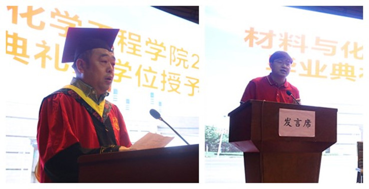 非毕业班学生代表、18级化工专业学生朱华卿送上祝福,祝愿学长学姐不负韶华,前程似锦。17级应化专业学生张佩佩代表全体毕业生表达了对母校的感恩和留恋。