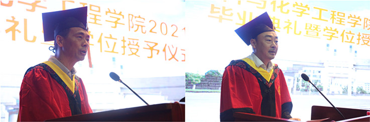应丁伟发言,感到非常荣幸能够参加毕业典礼,衷心祝愿同学们展翅高飞,激扬青春,为安徽、为祖国的化工事业做出更好更高的贡献!