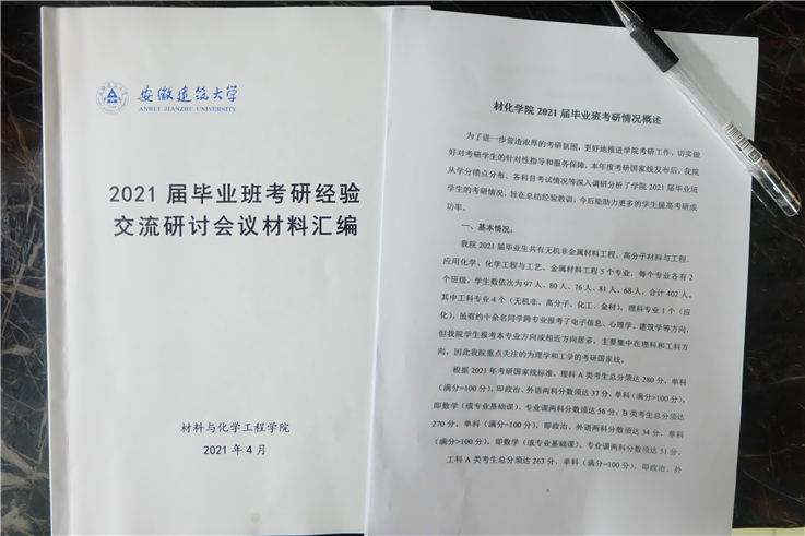 本网讯 “老师,感谢您大学四年的帮助,我被中科大录取了”,“老师,在您和书记的引导下,我决定调剂并且成功录取了”,“老师,我们宿舍六人全体上岸了”……材化学院一直以来高度重视学风建设工作,以考研为抓手,将学风建设工作落细落小落实,通过系列举措,2021届学院考研报考率71.64%,达线率为35.82%,实现了考研录取率由去年的22.09%,跨越式提升到今年的34.58%,居于全校前列。优异成绩的取得离不开学生个人的刻苦努力,也离不开学院多措并举抓考研工作,更离不开学院对学风建设工作持之以恒的重视、探索与总结。