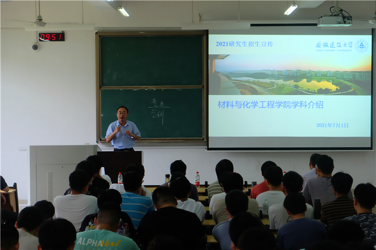 为进一步提升学院人才培养质量,扎实推进本科生考研工作,7月1日,材化学院举办2022届考研工作推进会,学院全体领导班子成员、研究生院副院长黄凯、学院科研办老师、辅导员以及全体2022届毕业班考研学生参加会议。领导嘉宾从就业形势与人生规划、考研的作用、考研目的等方面对学生考研进行引导和鼓励,从学校学科建设、师资队伍、研究生培养等方面进行了详细阐述,建议相关同学关注本校研究生招考,鼓励同学们合理规划、明晰目标,抓住机遇、勤学拼搏。