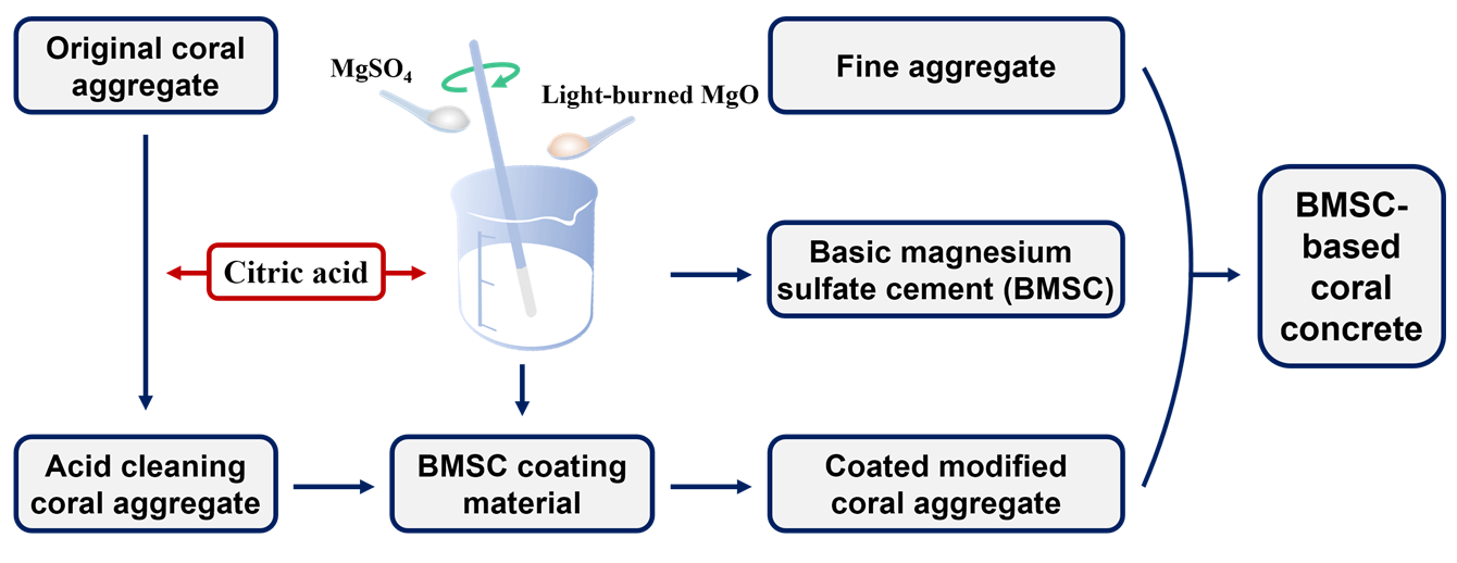 Fig. 1 Schematic of the process used to enhance the BMSC-based coral concrete performance based on gradient composite technology