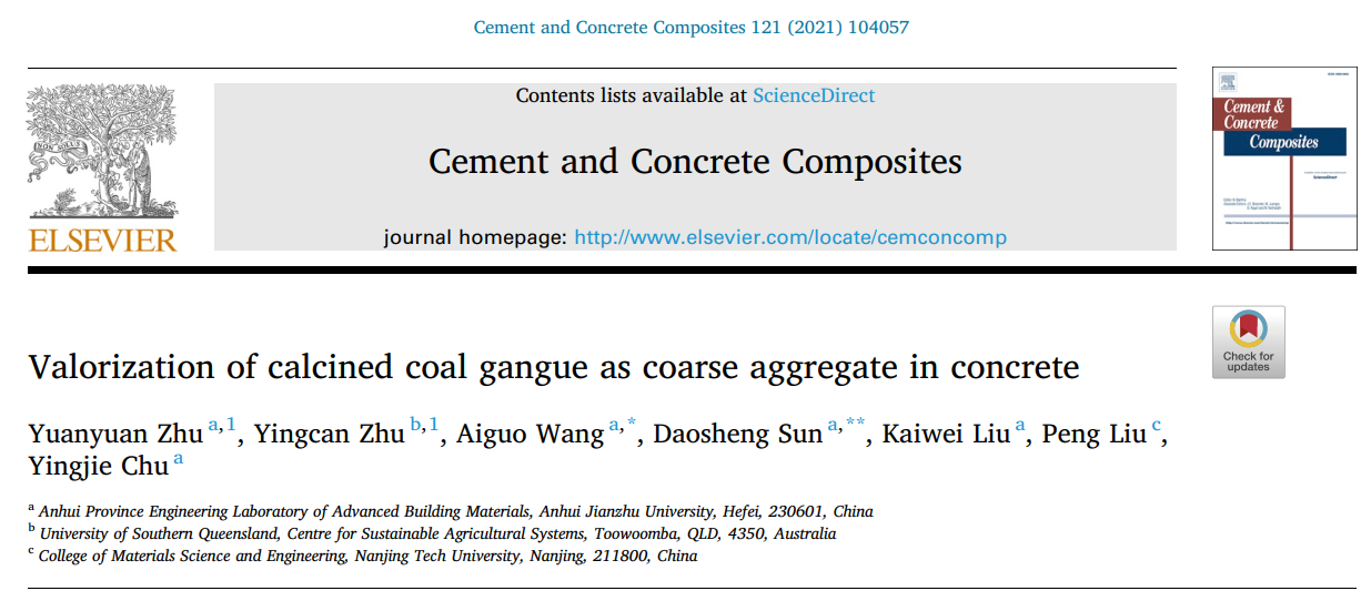 同时,这也是王爱国教授本年度继指导硕士研究生朱愿愿和楚英杰在行业顶刊《Cement & Concrete Composites》(JCR Q1区,影响因子7.586)上发表关于先进土木工程材料方面高水平学术论文“Valorization of calcined coal gangue as coarse aggregate in concrete”(https://doi.org/10.1016/j.cemconcomp.2021.104057)后的又一项突破。