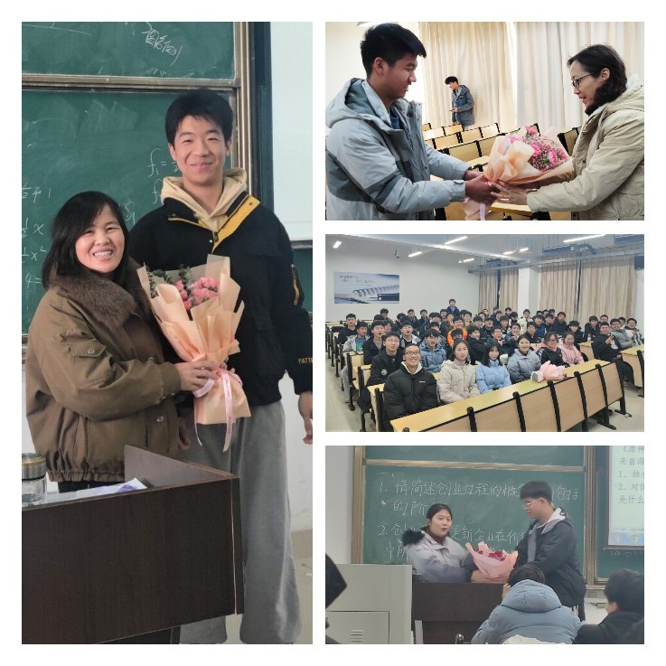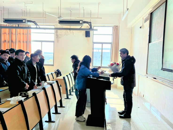 在本学期最后一堂课上,各班级同学手捧鲜花向老师们表达真挚的感激并集体起立向老师们道一声“老师,您辛苦了!”。感恩的话语融入花束送到了每位老师心中,让老师们在期末的寒冬感受到特别的温暖。教诲如春风,师恩似海深。一束束鲜花带去材化学子对老师们一学期辛勤付出的尊重与认可,一声声感谢让老师们真切感受到了作为教育工作者的自豪感和浓浓的师生情。