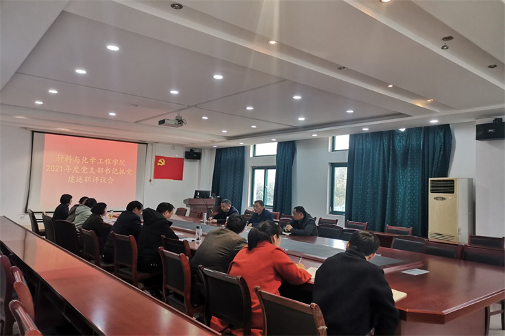 本网讯 2月28日,材化学院党委在学院第一会议室组织召开了“2021年度党支部书记抓党建述职评议会”,学院党委委员,各党支部书记参加了评议会,会议由学院党委书记万德军主持。