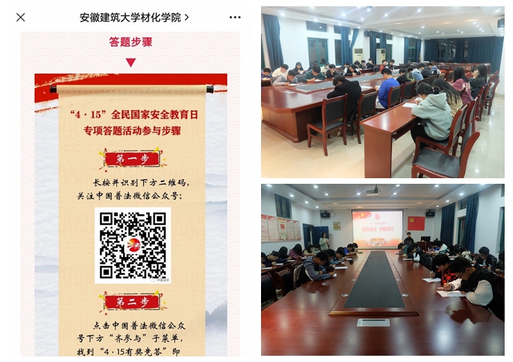 本网讯 2022年4月15日是第七个全民国家安全教育日,为深入学习习近平总书记全面依法治国新理念新思想新战略,进一步贯彻落实习近平总书记提出的“总体国家安全观”重要举措,增强广大学子国家安全意识,提高维护国家安全的能力,材化学院于2022年4月13日-15日开展“全民国家安全教育日”系列活动。