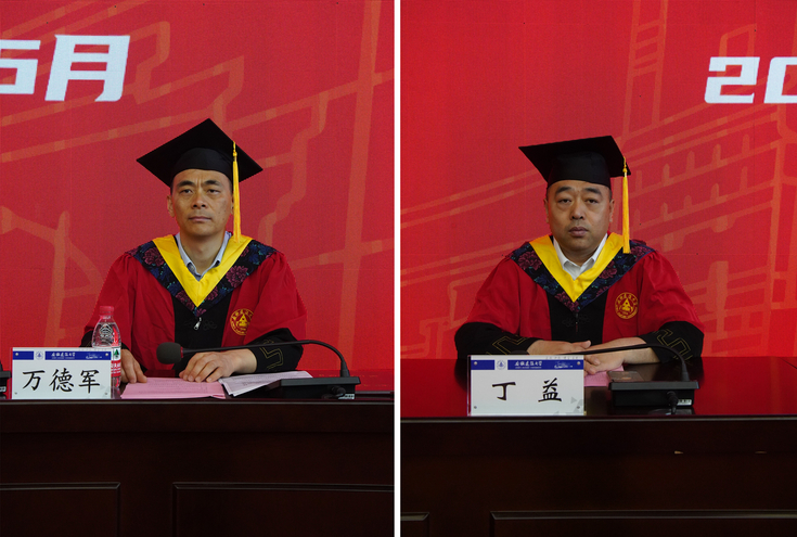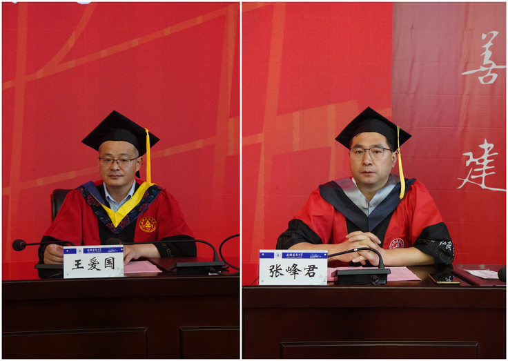 副院长张峰君、王爱国分别宣读了授予学士学位、硕士学位毕业生名单。在欢快的音乐声中,与会领导亲切地为省、校级优秀毕业生正冠拨苏、授予学位。之后,五十余位毕业生学业导师依序上场,为自己所带学生一一扶正流苏,并合影留念。