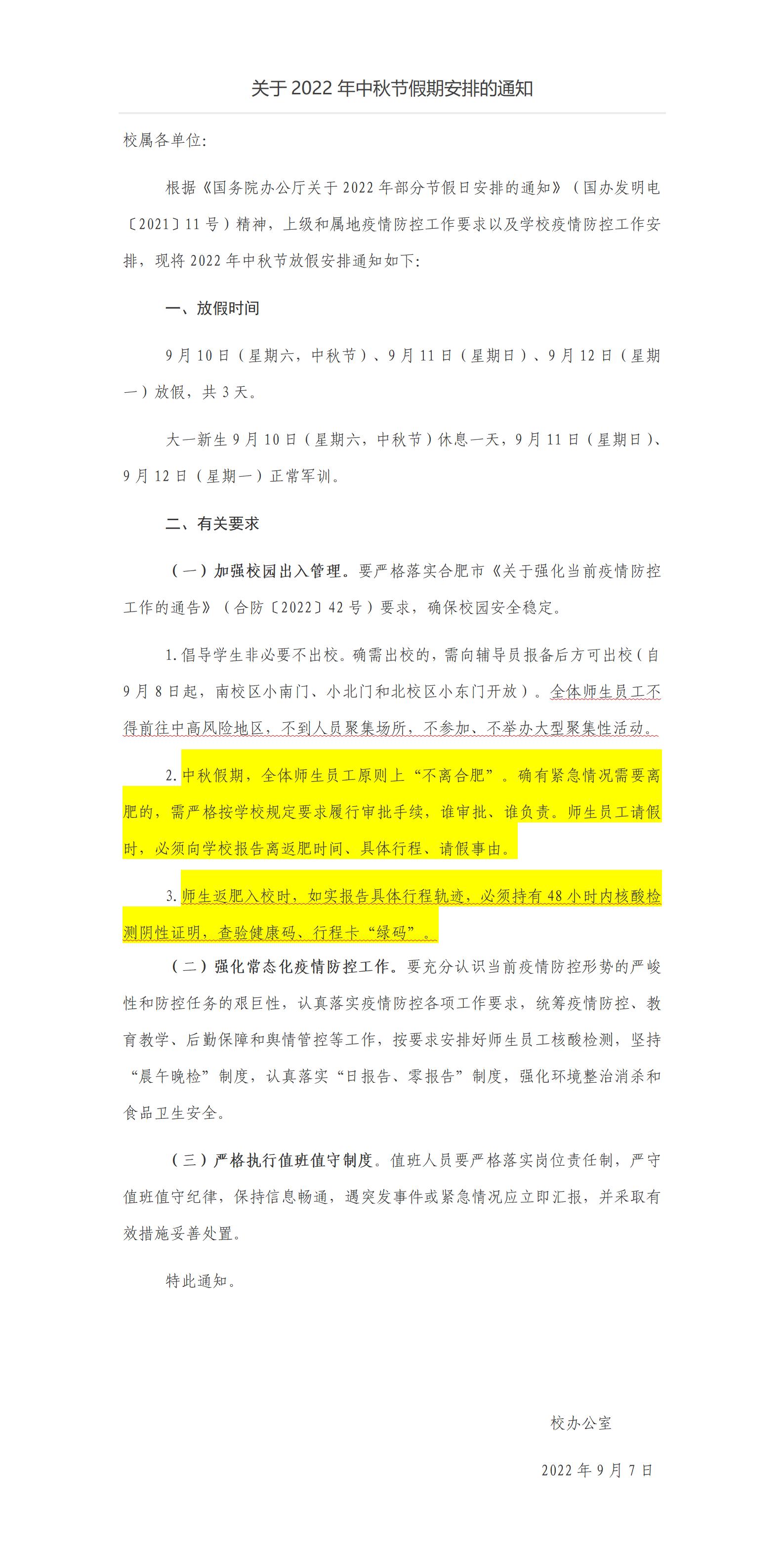 转发校《关于2022年中秋节假期安排的通知》