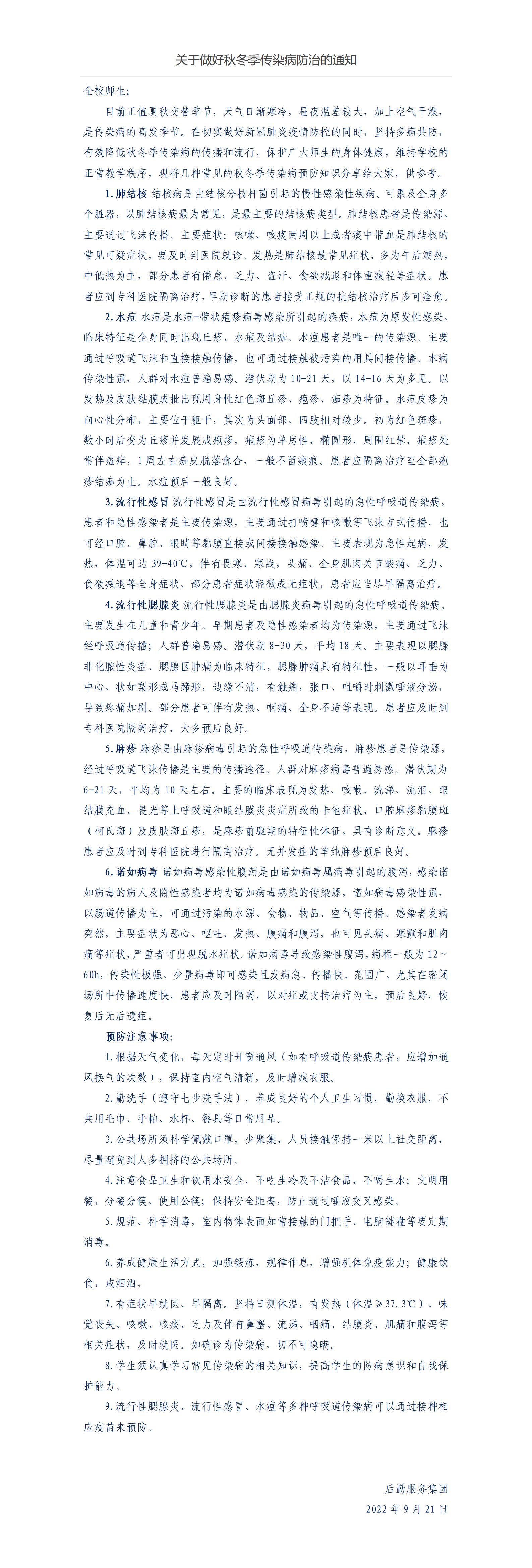 转发《关于做好秋冬季传染病防治的通知》