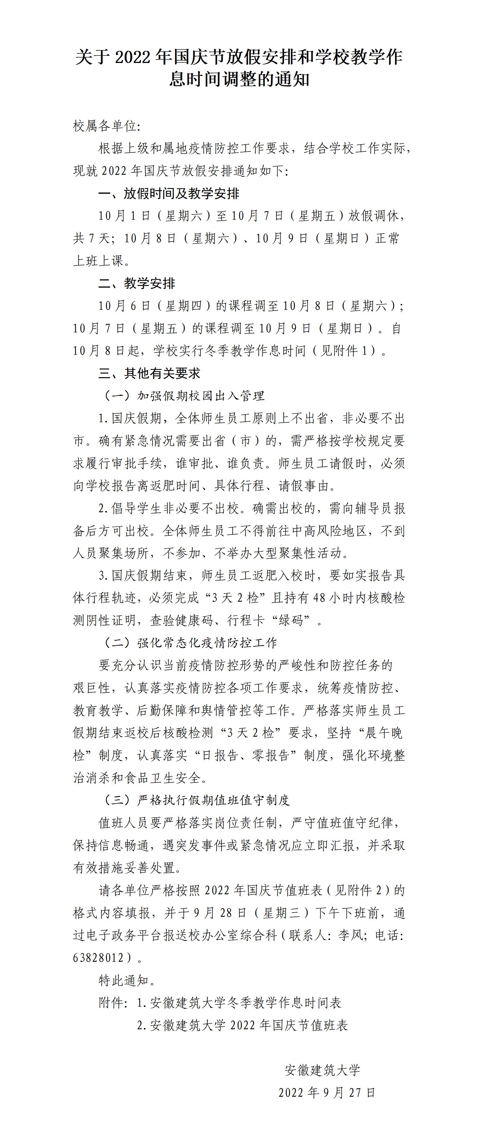 转发《关于2022年国庆节放假安排和学校教学作息时间调整的通知》