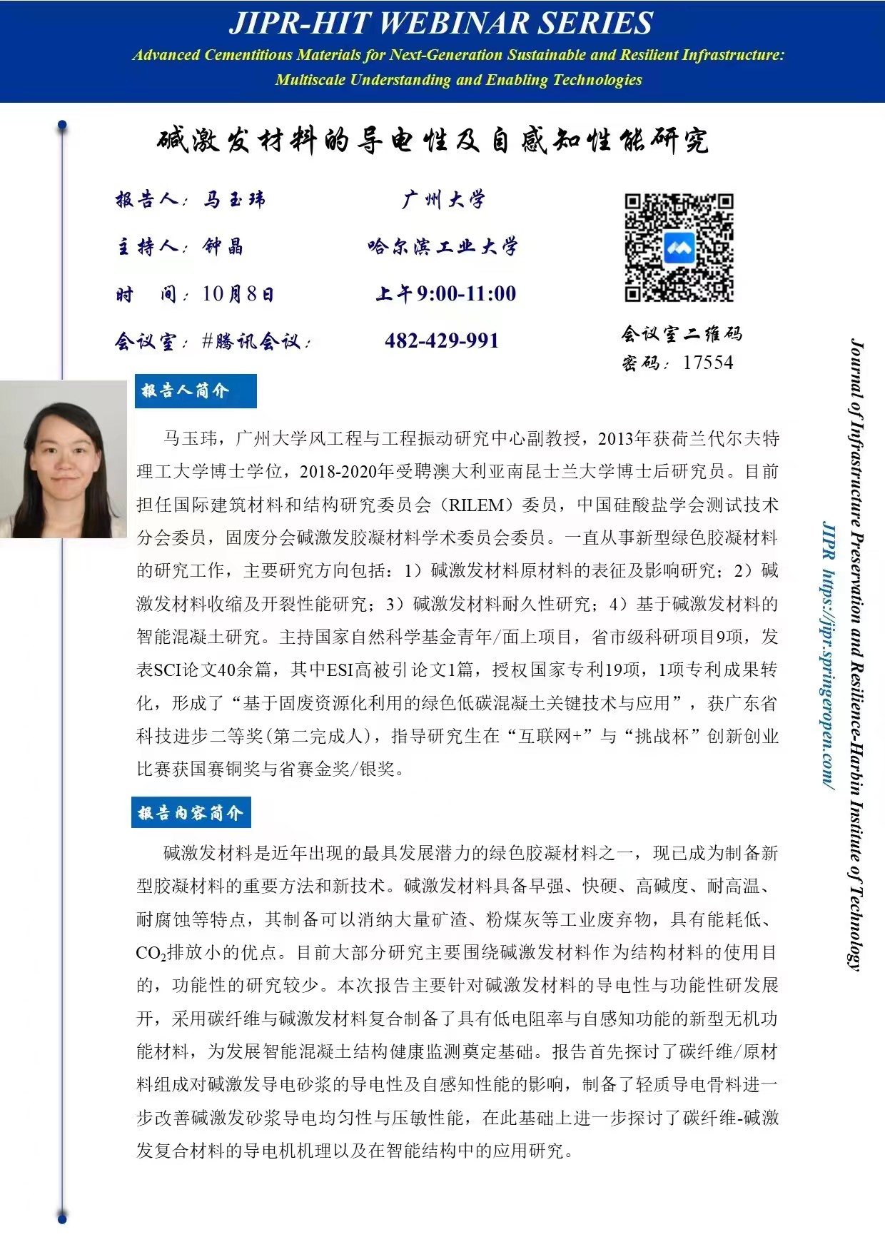学术报告:碱激发材料的导电性及自感知性能研究