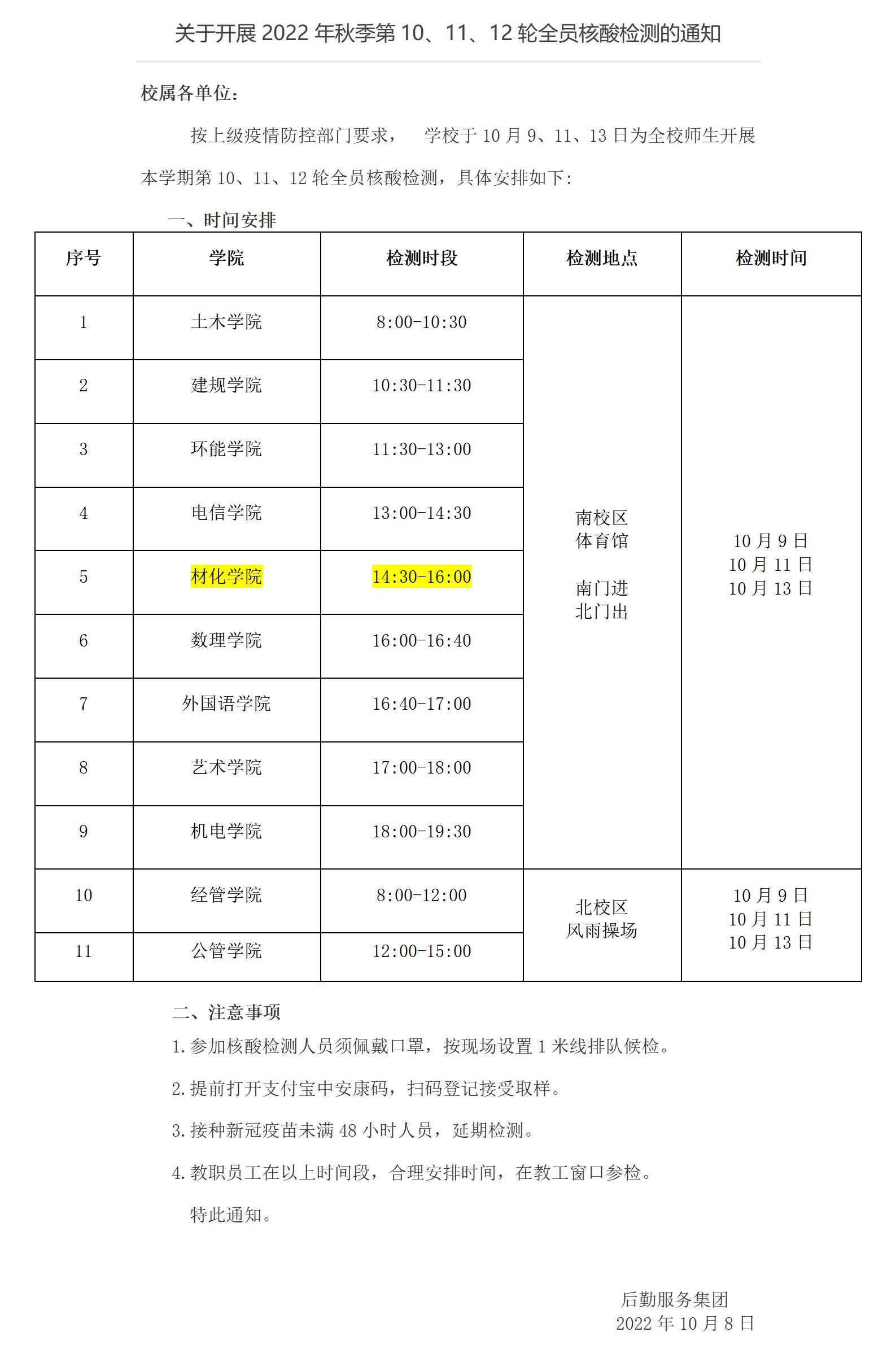 转发《关于开展2022年秋季第10、11、12轮全员核酸检测的通知》