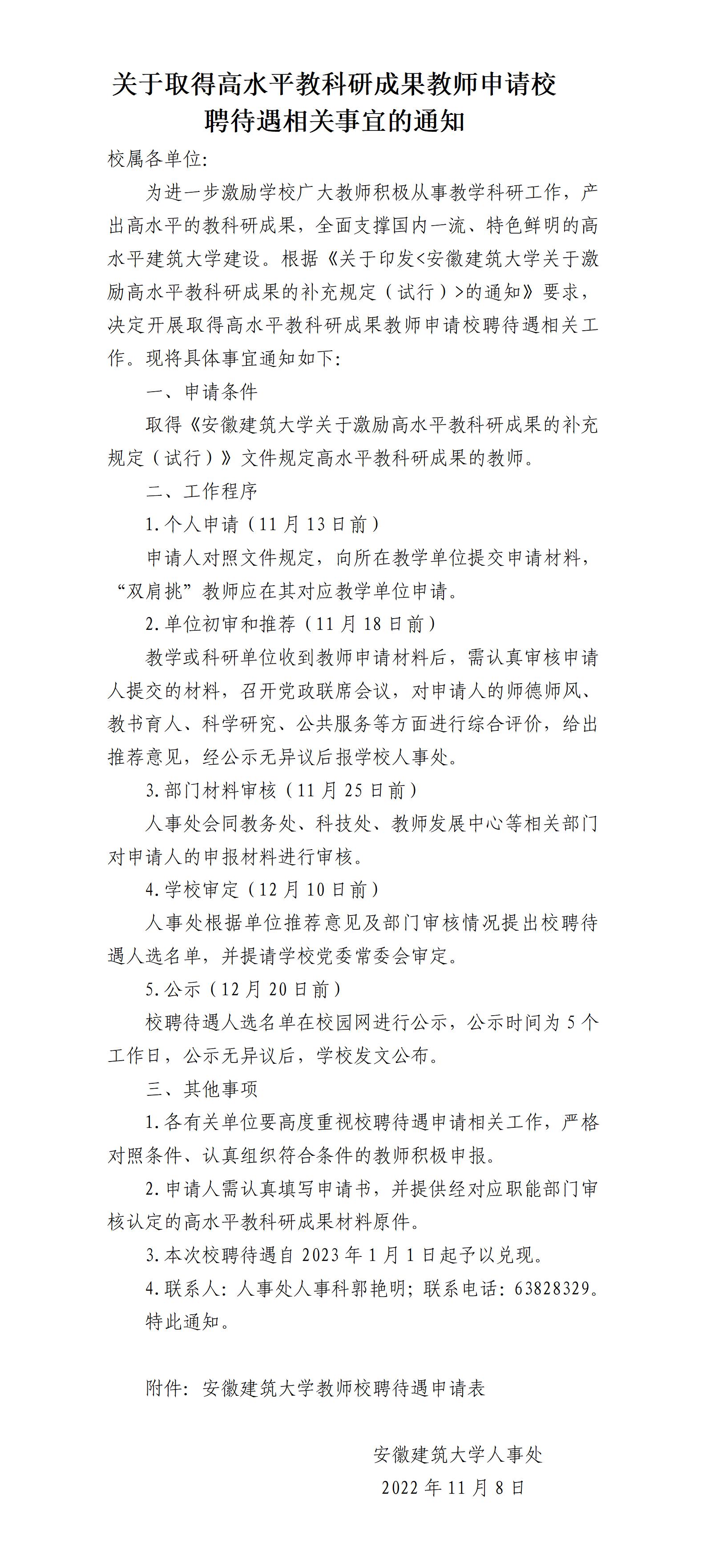 转发《关于取得高水平教科研成果教师申请校聘待遇相关事宜的通知》