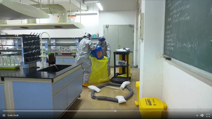 本网讯 高校实验室安全一直是备受关注的问题。为进一步强化广大师生安全意识,减少实验室安全隐患,保障实验室安全稳定运行,提高广大师生应对突发安全事件的能力,切实保护师生人身安全,实验室与设备管理处于11月23日下午在理化楼C202室组织实验室废液泄漏应急处置演练。