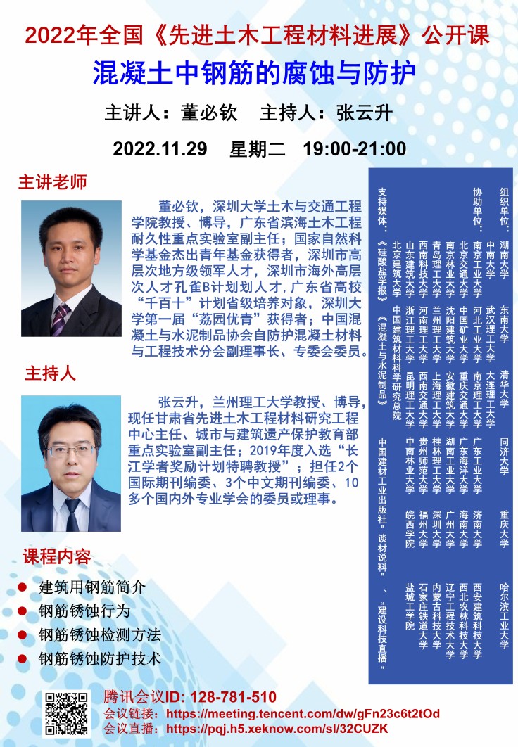 学术报告:混凝土中钢筋的腐蚀与防护