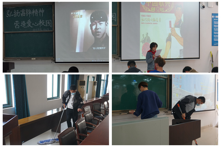 活动中,各班级团支书以习近平总书记对深入开展学雷锋活动作出的重要指示精神为主题展开讲解,深入阐述了雷锋精神的时代内涵和学习雷锋精神的重要意义,鼓励广大团员青年积极发挥模范带头作用,将雷锋精神落实到具体行动中。学生会成员带领大家观看了《雷锋》纪录片,分享了雷锋精神在生活中的实践故事,共同回顾了雷锋同志的生平,重温了雷锋同志以实际行动践行“把有限的生命,投入到无限的为人民服务中去”的光辉事迹,全体同学在志愿者的带领下学习了歌曲《学习雷锋好榜样》,让雷锋精神在振奋人心的歌声中永垂不朽。活动后,志愿者们对逸夫楼教室、实验室等教学、活动场所进行志愿清扫,用实际行动践行雷锋精神和“奉献、友爱、互助、进步”的志愿精神。