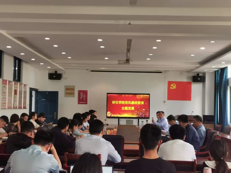 本网讯 为进一步加强教师党员坚定理想信念,提高党员拒腐防变能力,增强廉洁自律意识,4月20日,材化学院党委副书记何世明为教师党员上了一堂党风廉政专题党课。