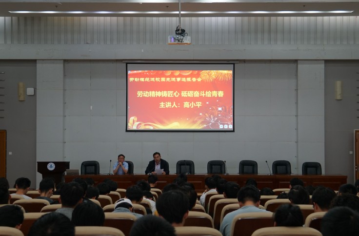 本网讯 为大力弘扬劳动精神、劳模精神、工匠精神,引导广大青年学生自觉践行社会主义核心价值观,坚定理想信念,强化担当意识,510日下午,安徽省劳动模范高小平受邀到材化学院为青年学子开展“聆听劳模故事,汲取榜样力量——与劳模面对面”宣讲,材化学院200余名学子参与本次活动。