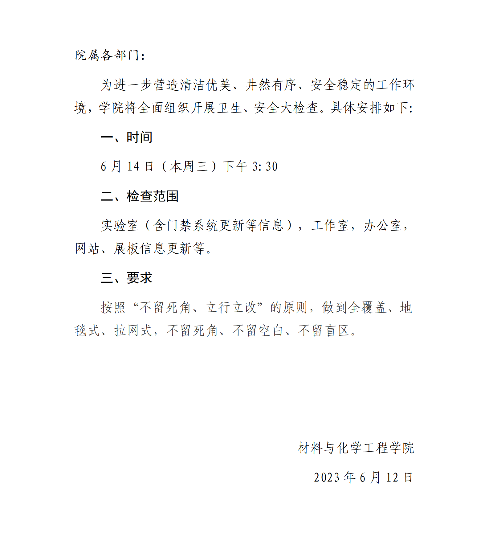 关于全面开展卫生、安全大检查的通知
