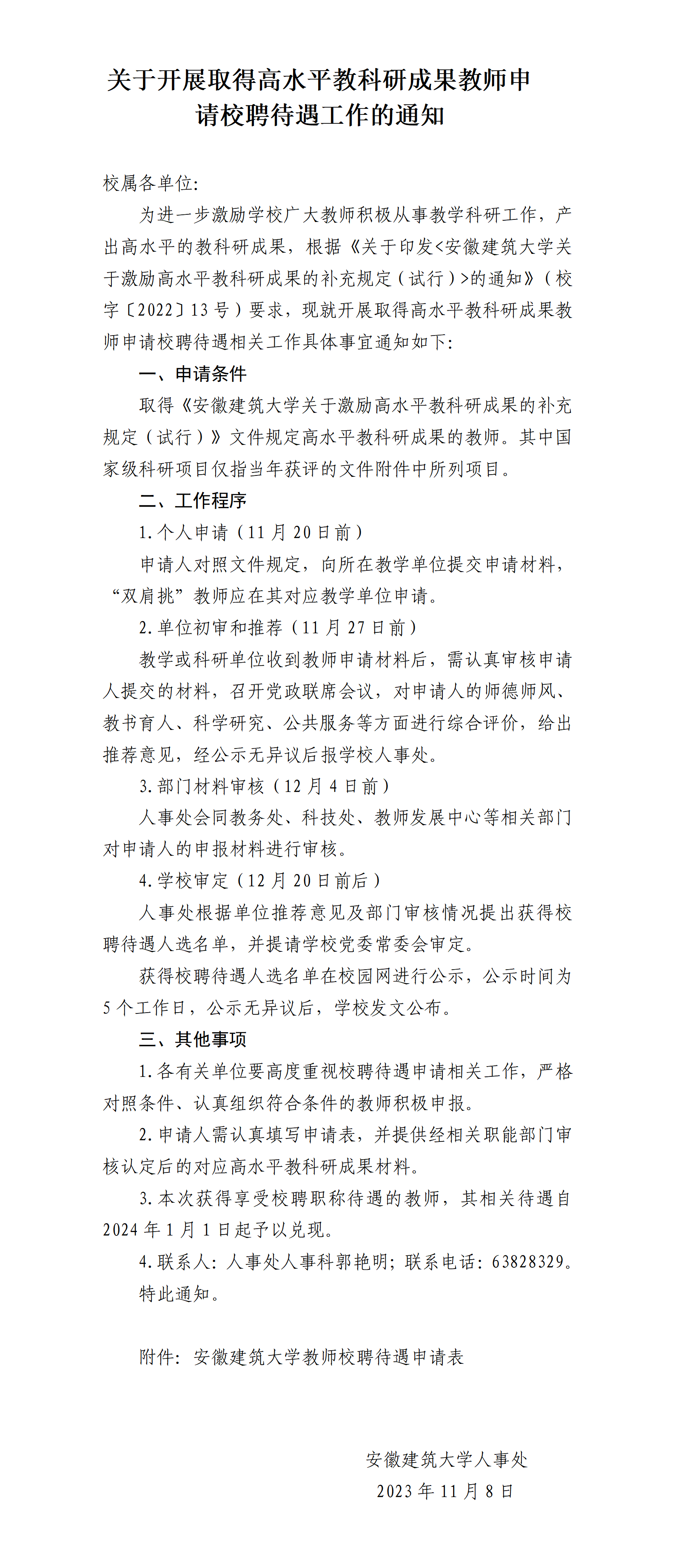转发《关于开展取得高水平教科研成果教师申请校聘待遇工作的通知》