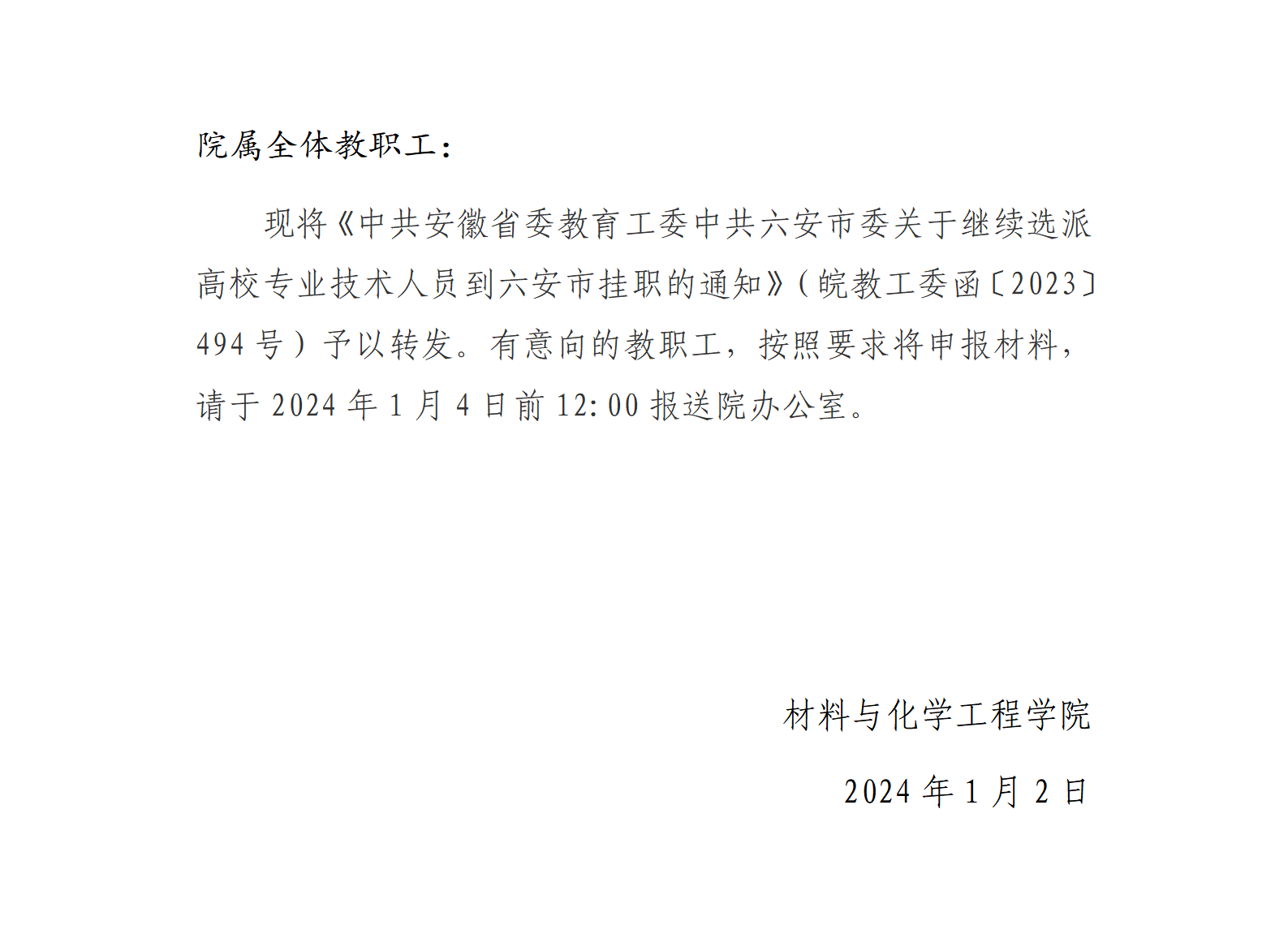 附件1:中共安徽省委教育工委 中共六安市委关于继续选派高校专业技术人员到六安市挂职的通知.pdf