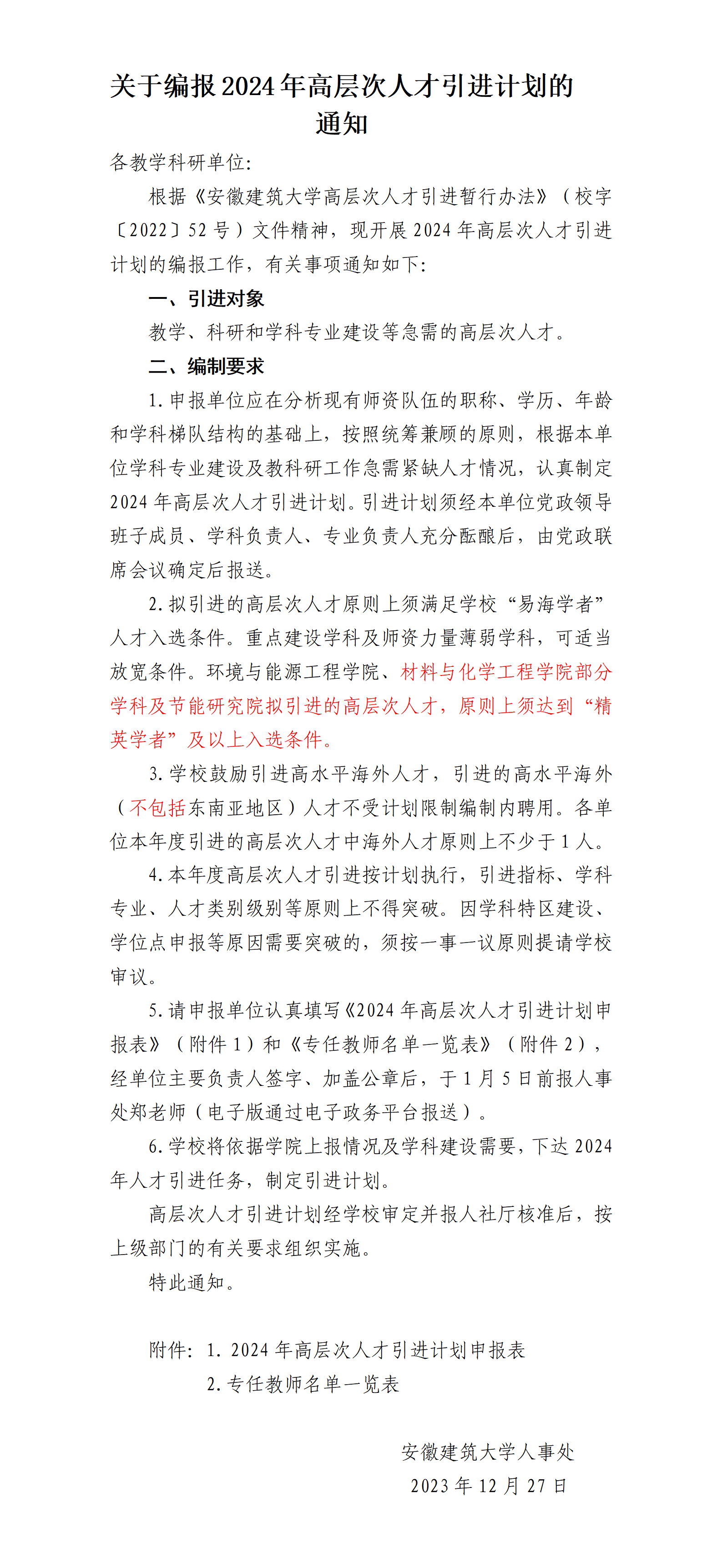 转发《关于编报2024年高层次人才引进计划的通知》