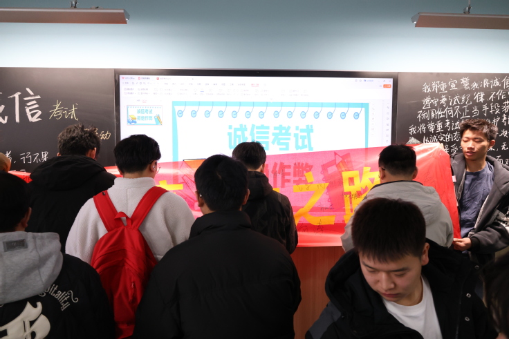 本网讯 为使同学们认识到诚信的重要性、培养同学们诚信意识,学会将诚信融入日常生活中的每一件小事,真正做到诚实守信,12月27日下午,材料与化学工程学院团委学生会于主教楼1502举办了诚信考试主题签名活动。