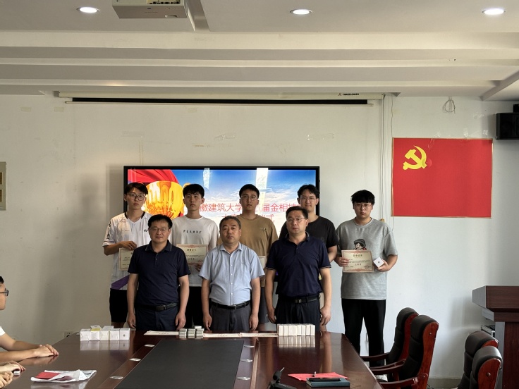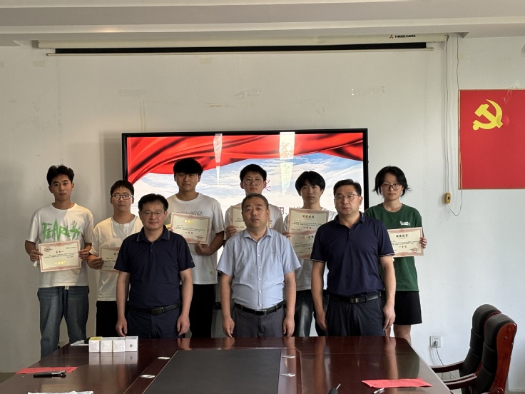 张峰君主持会议,王爱国宣读获奖学生名单,学院领导为获奖同学颁发获奖证书和奖品。