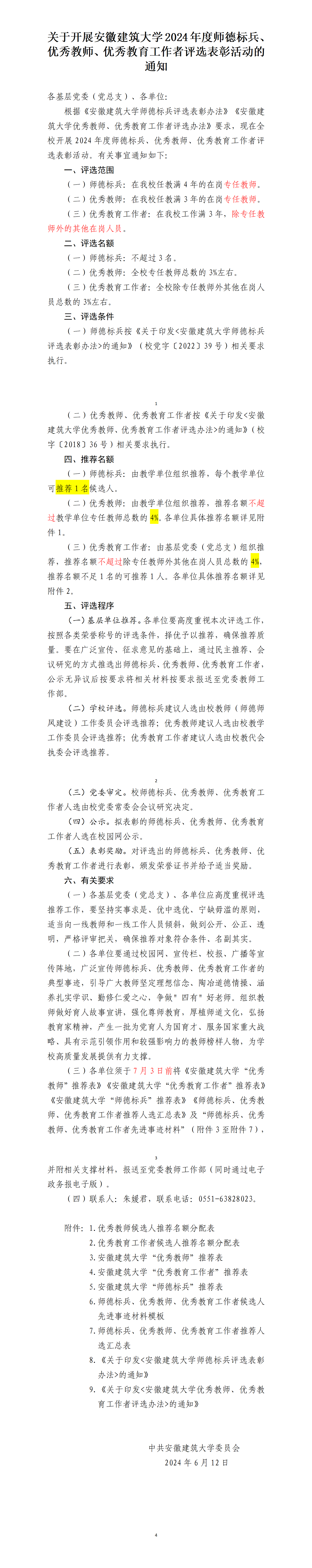 附件:关于材化学院2024年度师德标兵、优秀教师、优秀教育工作者推荐名额分配表.xlsx