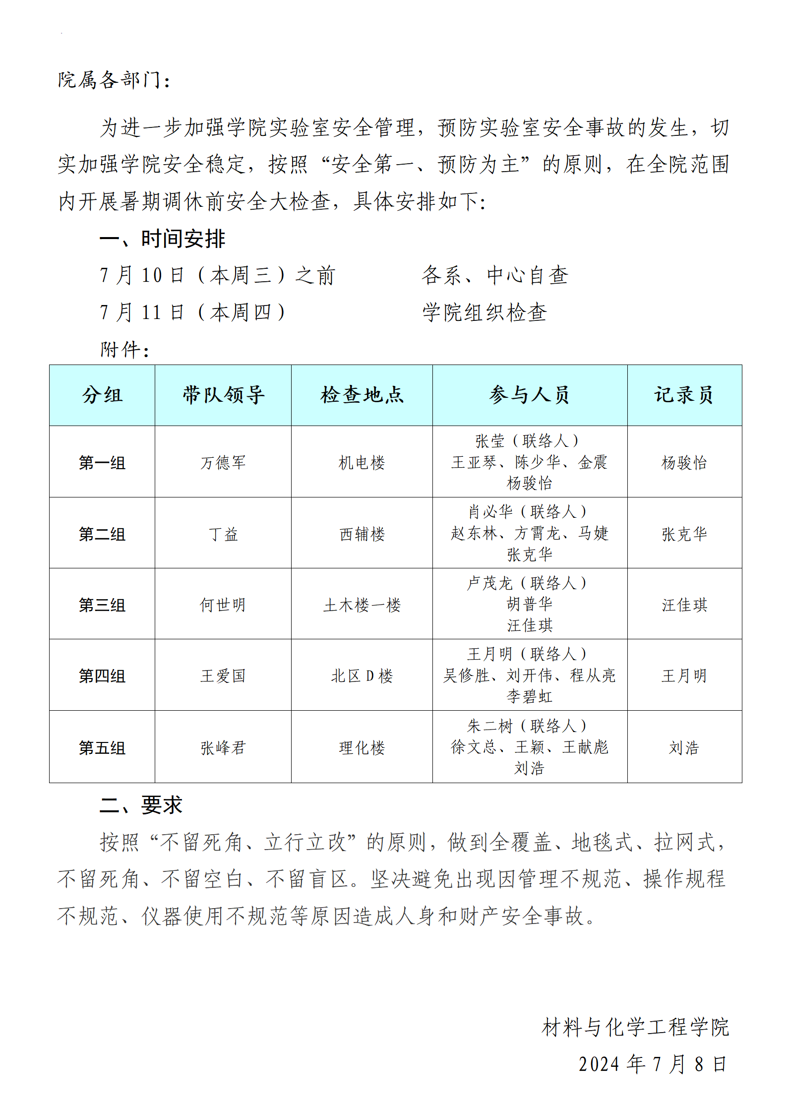 关于开展暑期调休前安全大检查的通知