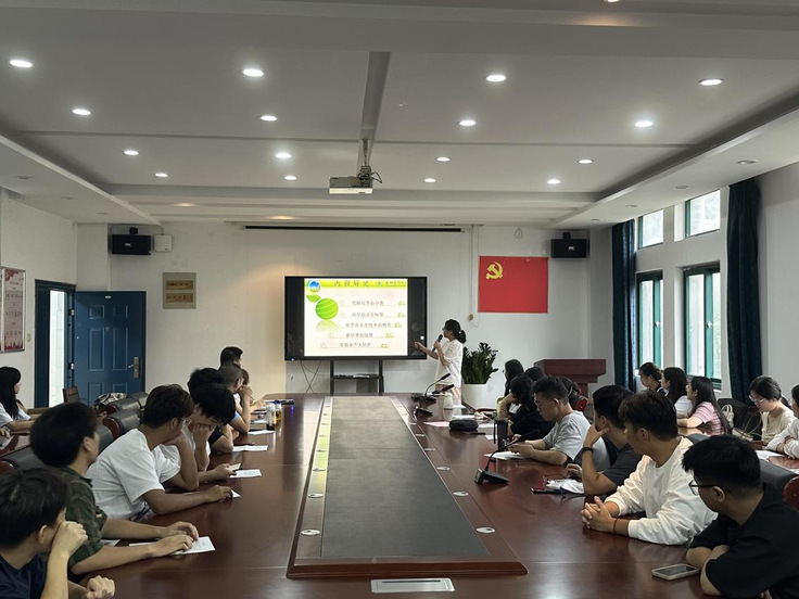 化学实验中心李茜老师对新生进行了实验安全教育培训,详细讲解了实验室安全注意事项、危险化学品管理、仪器操作规范、实验室安全用电、实验室火灾预防及个人防护等知识,帮助新生在实验室使用和管理过程中树立良好的安全意识。