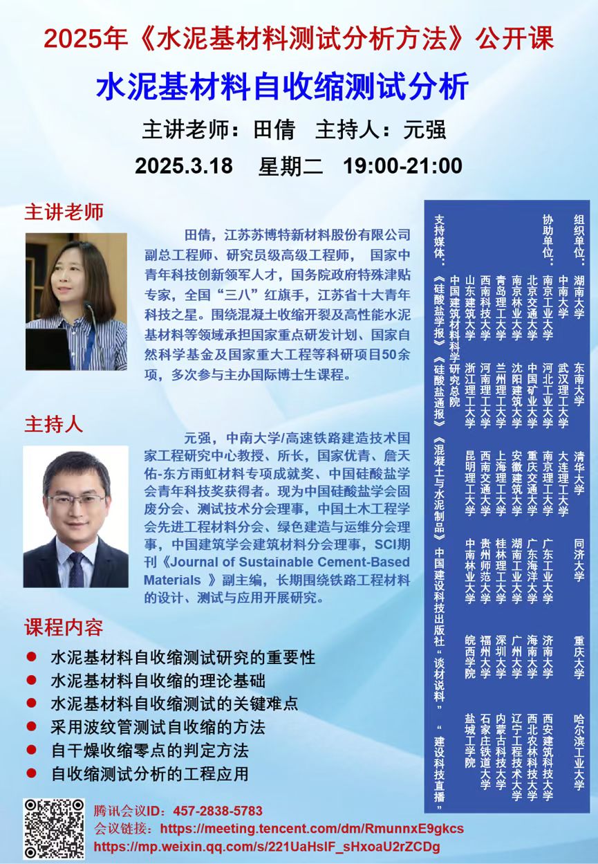 2025年《水泥基材料测试分析方法》公开课——水泥基材料自收缩测试分析