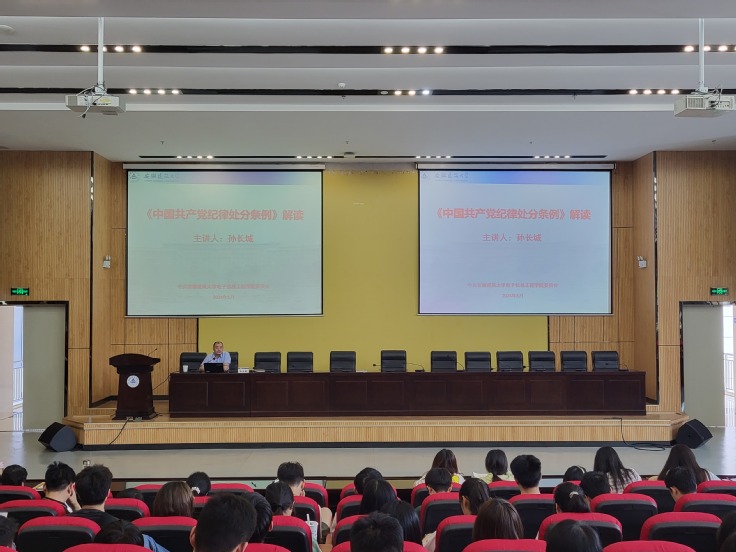 本网讯 为扎实推动党纪学习教育,实现党纪学习教育全覆盖,引导广大干部师生学纪、知纪、明纪、守纪。5月22日下午在徽风楼二楼报告厅,电信学院党委举办党纪学习教育辅导会。学院党委书记孙长城对《中国共产党纪律处分条例》(以下简称《条例》)作了专题辅导,学院领导班子、全体师生党员300余人参加。