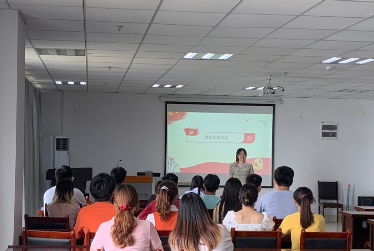 随后,朱梦瑶同学朗诵红色诗歌《百年风华》,引领大家重温了中国共产党的百年辉煌。张书瑜同志以一首《阳光路上》表达了对党100周年诞辰的祝福,在场同志纷纷跟唱,将活动推向高潮。
