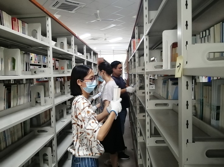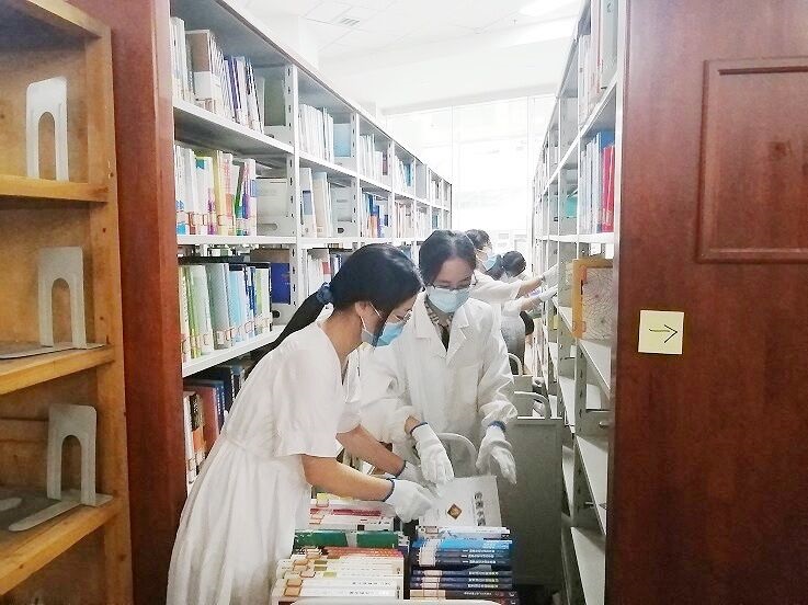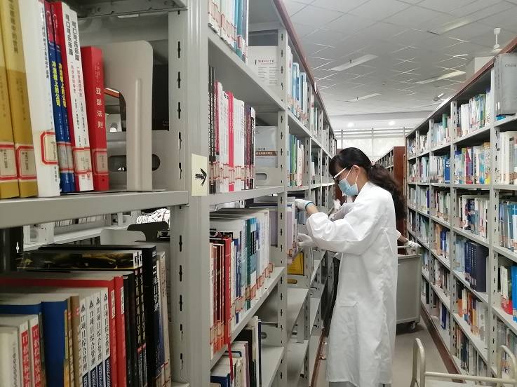 本网讯 自党史学习教育开展以来,图书馆坚持把“我为师生办实事”实践活动作为党史学习教育的重要内容,为配合学校南北区专业调整,方便师生们借阅本专业的图书。9月22日下午,图书馆全体党员来到社科二借阅室,在馆领导的带领下,对该借阅室的图书进行倒架整理。