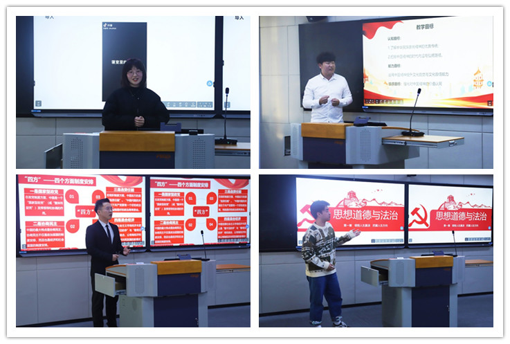 决赛中,8位同学以“拒绝内卷”、“思想的铁幕——西方文化霸权主义”、“中国模式——文明型国家的崛起”、“中国精神的时代内涵和弘扬途径”、“传承红色基因,赓续红色血脉”、“诚信在当代的意义”、“领悟人生真谛,把握人生方向”、“国乃一生所爱”等为主题,进行了形式多样的现场教学展示。各参赛选手全情投入,将饱满的热情、振奋的精神、铿锵的语言融入有趣的讲课展示之中,赢得了在场评委和观众阵阵热烈掌声。