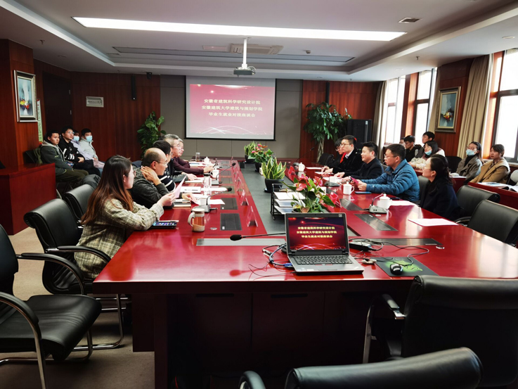 学院党委副书记吴梦东介绍了学校的发展情况、学院学科建设成果及2022届毕业生生源和就业情况。学院副院长顾康康介绍了学院研究生规模、培养方式、科研平台建设情况。安徽省建筑科学研究设计院党委委员、副院长、总建筑师安东兵介绍了企业发展历程与规模、企业文化、核心产品与技术、人才需求。副院长徐从广介绍了岗位需求、薪资待遇,并就招聘计划做了深入沟通。