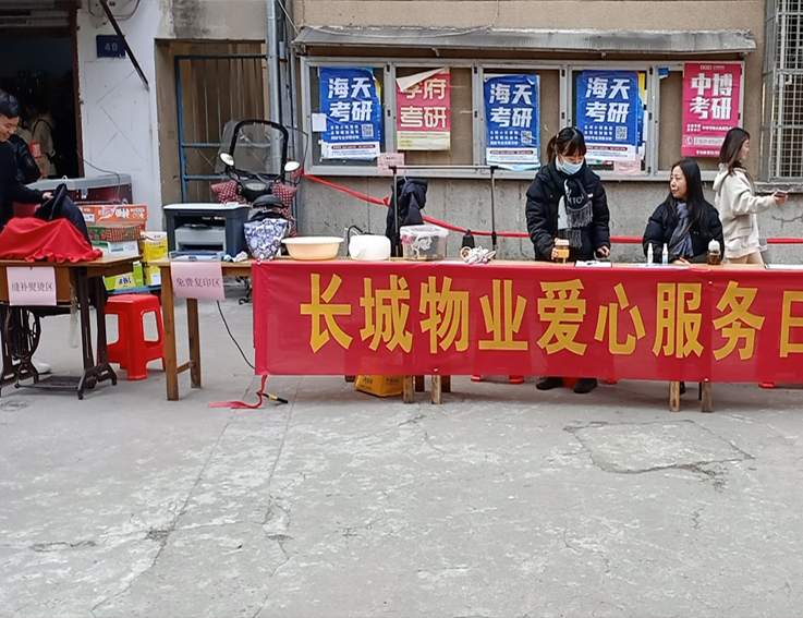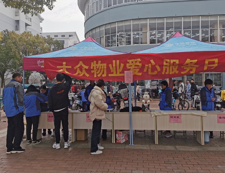 本网讯 为打造优质服务品牌,争创一流服务业绩,尽情彰显宿舍管理人员对学子们真挚的关心、爱护和贴心服务。12月8日,公寓中心联合南校区大众物业和北校区长城物业开展“爱心服务日”活动,为同学们提供“家门口”的便捷服务,解决生活中遇到的困难。为了扩大活动影响力,活动前期利用微信平台、在公寓张贴通知等方式进行广泛宣传。