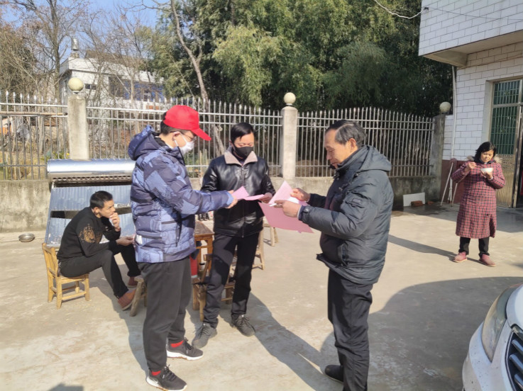 当然,偶发的意外也会让他们措手不及。2月5日,曹嘉良和他的同事们照旧守着村口的监测点,却不想碰到了一位要强行进入村子的邻乡人,工作人员极力劝说他返回自己的家乡却不想遭到了谩骂与威胁。而后,经过长达数小时的疏导,才最终摸清原因,他是来寻医问药的,原来都是村里的“名医”惹的“祸”。了解到事情的始末,出于防控的严格要求和人性化考虑,工作人员亲自将医生接到村口为这位邻乡人问诊开药。事后,曹嘉良同学在工作日记中写到:“从没想过基层的工作是这样的辛苦,村民的误解更是不少,今天的小插曲让我明白,不管做什么事,首先要了解事情的真实情况和人们的真实需求,在不违背工作原则的情况下,灵活处理,这样才能真正的守护好我们的家园。”郜宇风同学在入户宣传防疫知识时,竟意外成为老年村民的“心头宝”。受疫情影响,交通不便,不少老人的儿女都不能赶回老家过年,本应热闹非常的新年显得格外冷清。过年期间,本可以安稳守在家中的郜宇风,几乎每天都跟着防疫工作队员们一起走家访户,年轻而具有活力的他、嘘寒问暖的他、宣讲防疫知识那么认真的他,让很多老人想起自己的孙辈,就等打完抗击疫情的这场仗,家人们又可以其乐融融的聚在一起。