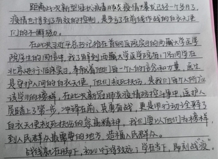 时代召唤青年,青年创造未来,总书记的回信绝不仅仅只是对这17名医学生的期待与嘱托,更是对我们广大青年发出倡议,向此次战“疫”中涌现出的榜样们看齐!珍惜每一寸光阴,用过硬的本领回馈社会,让人民满意,让祖国放心!(文、图:苏筱 审稿:孙长城)