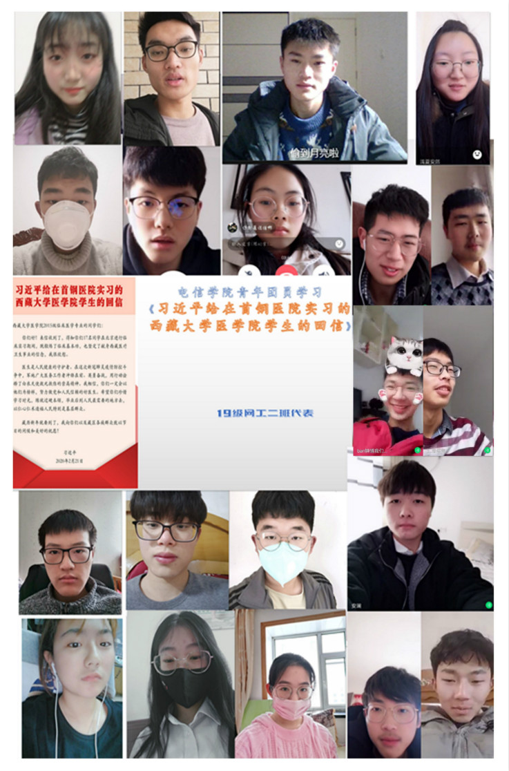 2月28日起,在校、院两级团委的倡议下,电信学院团员青年们纷纷行动起来,就此次回信开展线上学习。各支部组织有序,利用视频、语音会议进行学习。团员们认真领会回信内容与精神,并仔细记录学习心得。
