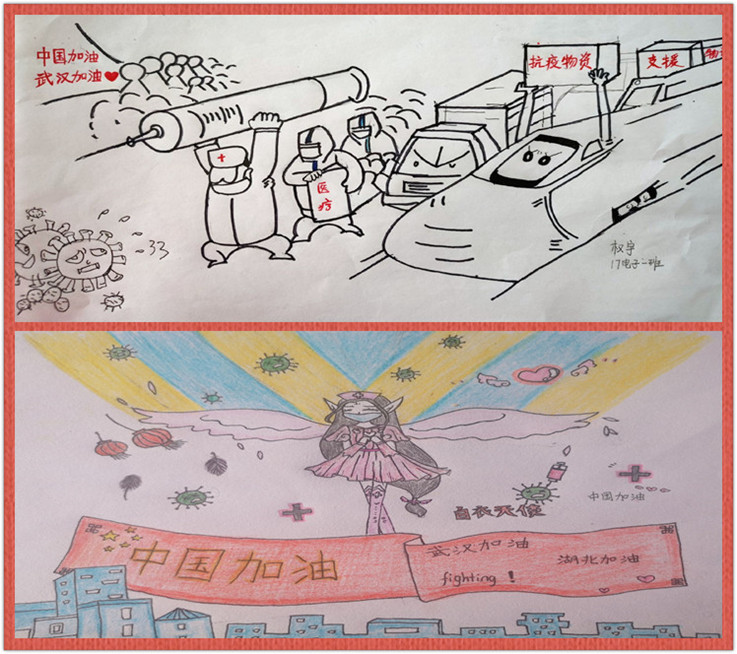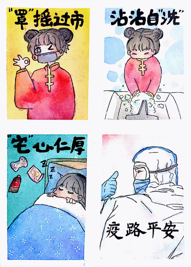 本网讯 大疫当前,为响应国家关于疫情防控的重要指示,坚决打赢防控疫情保卫战,电信学子严守学校防疫工作要求,足不出户。宅家期间,为展现疫情防控学院学生的积极乐观的精神风貌,电信学院特开展“且以画笔寄深情”主题创意彩绘活动,面向全院学生征集彩绘艺术作品,用画笔为抗“疫”助力。