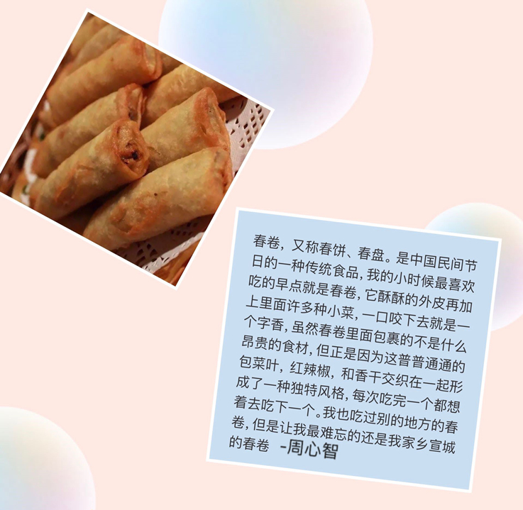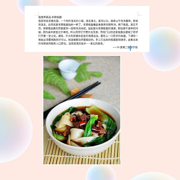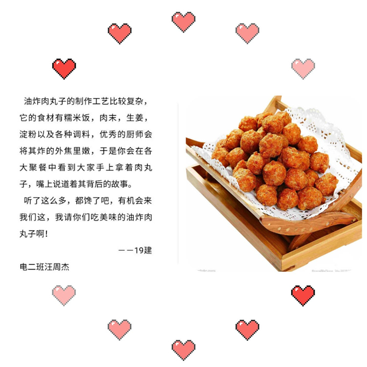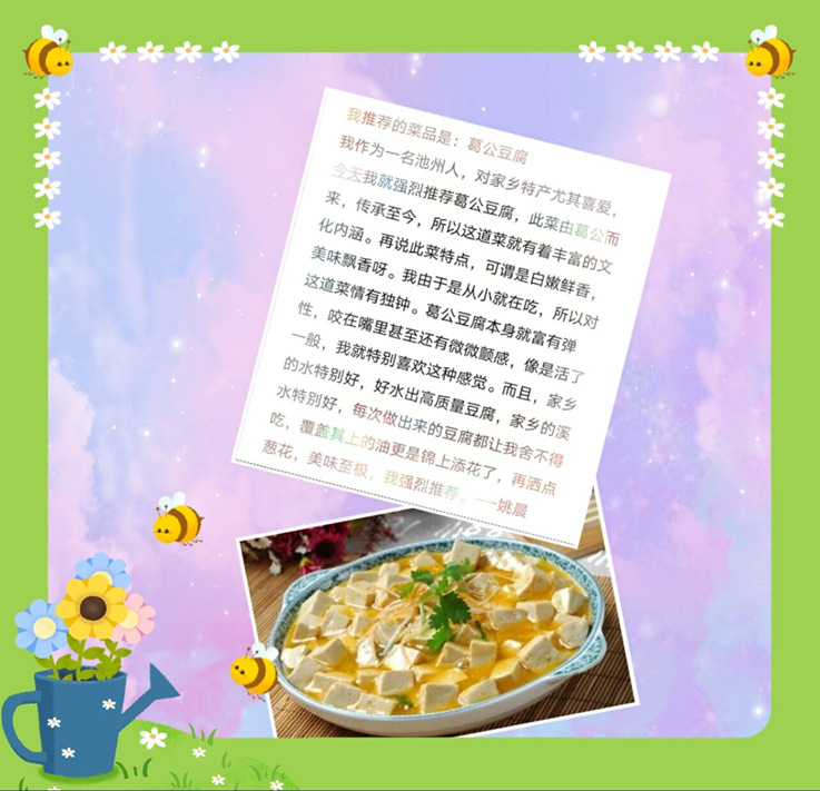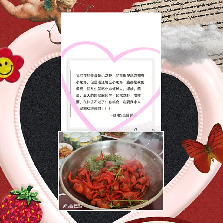 本网讯 千百年来,世事变迁,唯有对于美食的热爱,从未改变。居家抗疫期间,为避免疫情给同学们的身心健康带来损害,也为帮助同学们树立健康饮食的观念,弘扬中华民族传统美食文化,4月下旬,电信学院19级建筑电气与智能化团支部开展了以“舌尖上的家乡菜 心坎里的中国味”为主题的家乡菜线上推介活动。